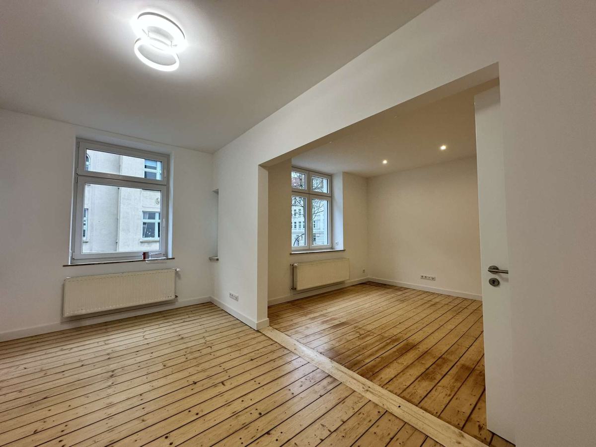 Die Wohnung präsentiert sich in einem neuwertigen Top-Zustand. Hohe Decken, klassische Proportionen und sorgfältig aufgearbeitete Details unterstreichen den charaktervollen Altbauflair. Gleichzeitig erfüllt die hochwertige Sanierung sämtliche Anforderungen an modernes Wohnen.