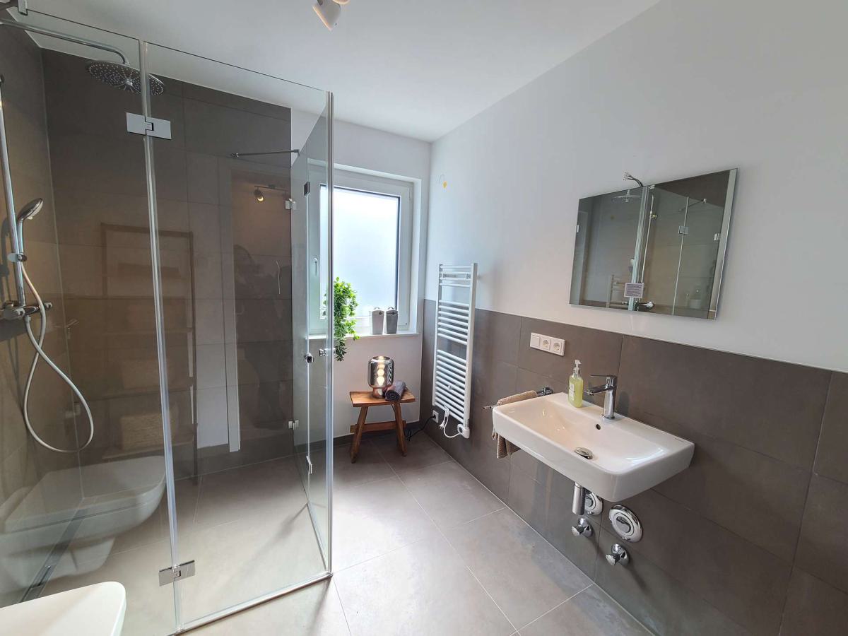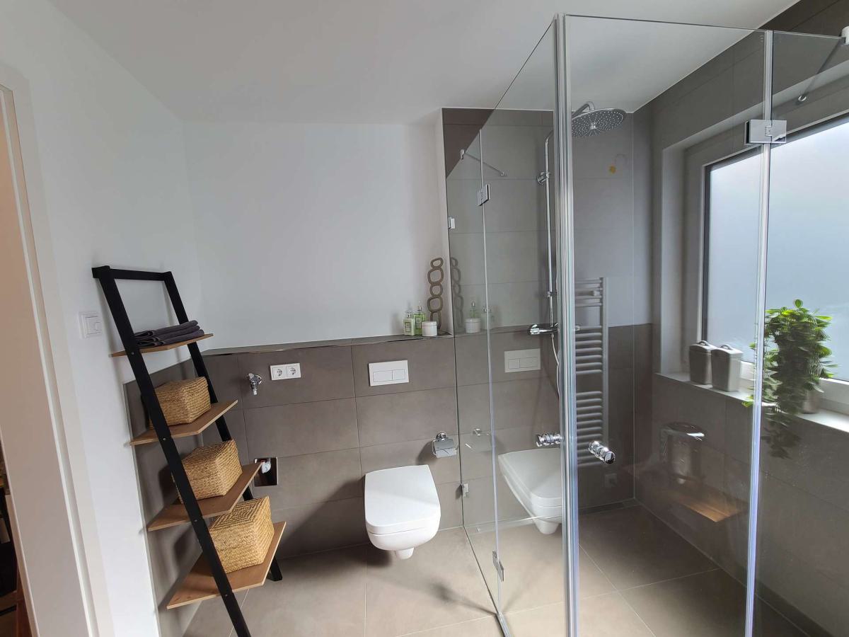 Die Beheizung des Neubaus erfolgt über eine energieeffiziente Wärmepumpe. In der Wohnung befindet sich eine Fußbodenheizung.