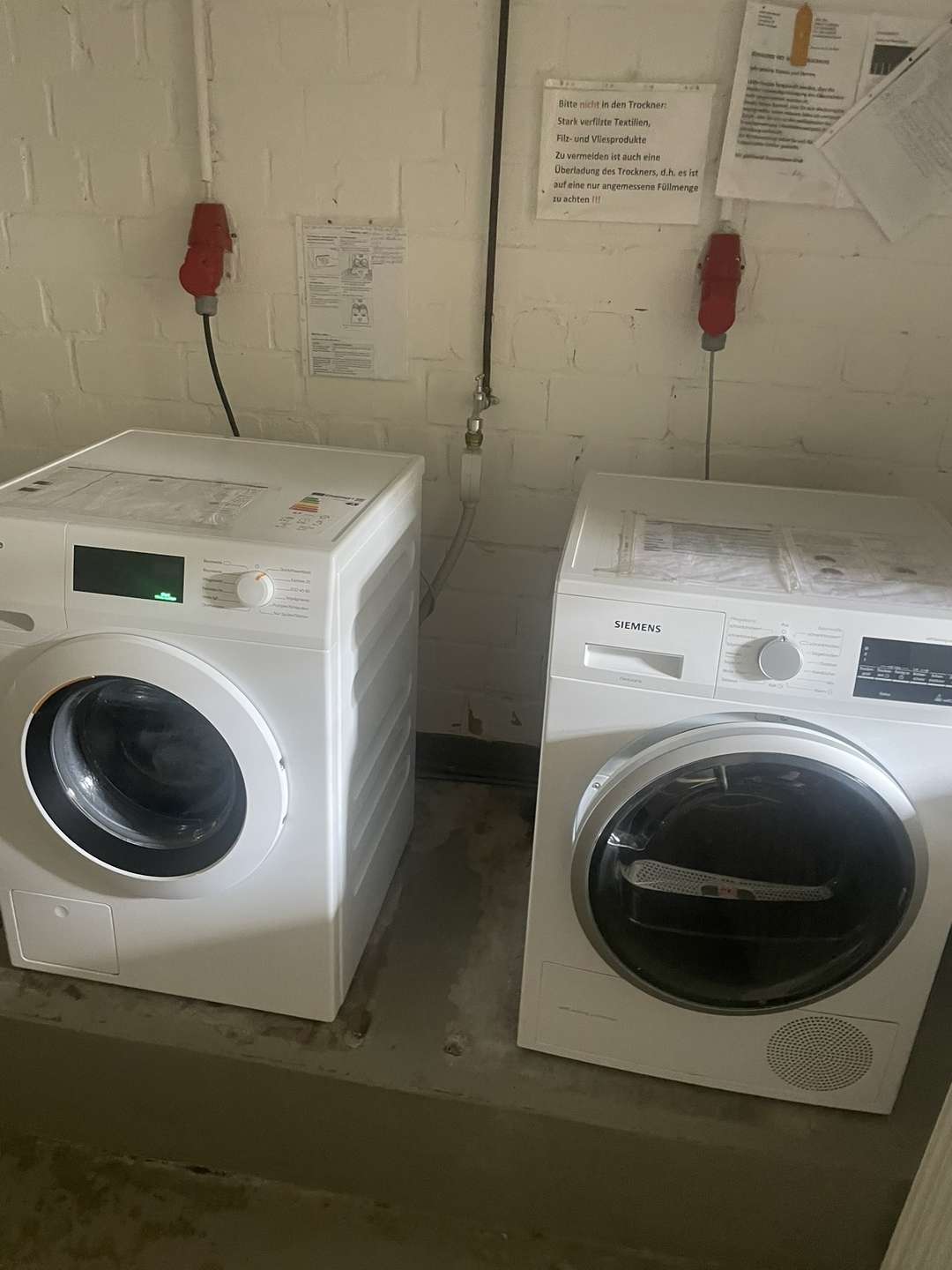 Zu der Wohnung gehört ein eigener Kellerraum. Die Waschküche ist für alle Hausbewohner bestückt mit einer Waschmaschine und einem Trockner. Bei Bedarf können eigene Geräte im großzügigen Badezimmer aufgestellt werden.