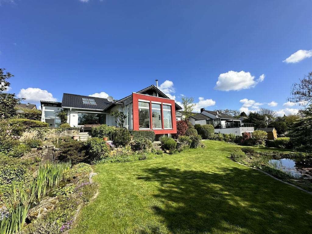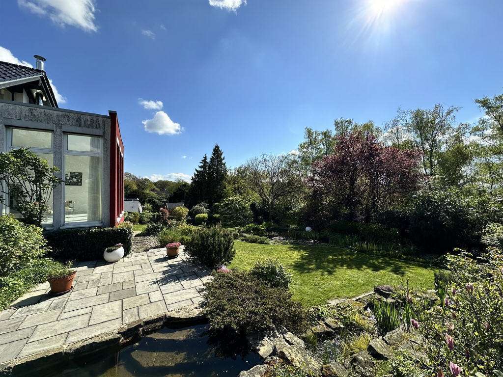 Als weiteres Highlight rundet der herrlich angelegte Garten und der großzügige Terrassenbereich in Naturstein nebst Bachlauf und Wasserfall das positive Gesamtbild der Immobile ab.