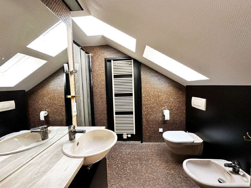 Das Obergeschoss beherbergt das Elternschlafzimmer mit eigenem Bad en Suite und Ankleidezimmer. Zudem gibt es ein großes Arbeitszimmer, einen Flur, ein weiteres WC sowie eine großzügige Abstellkammer.