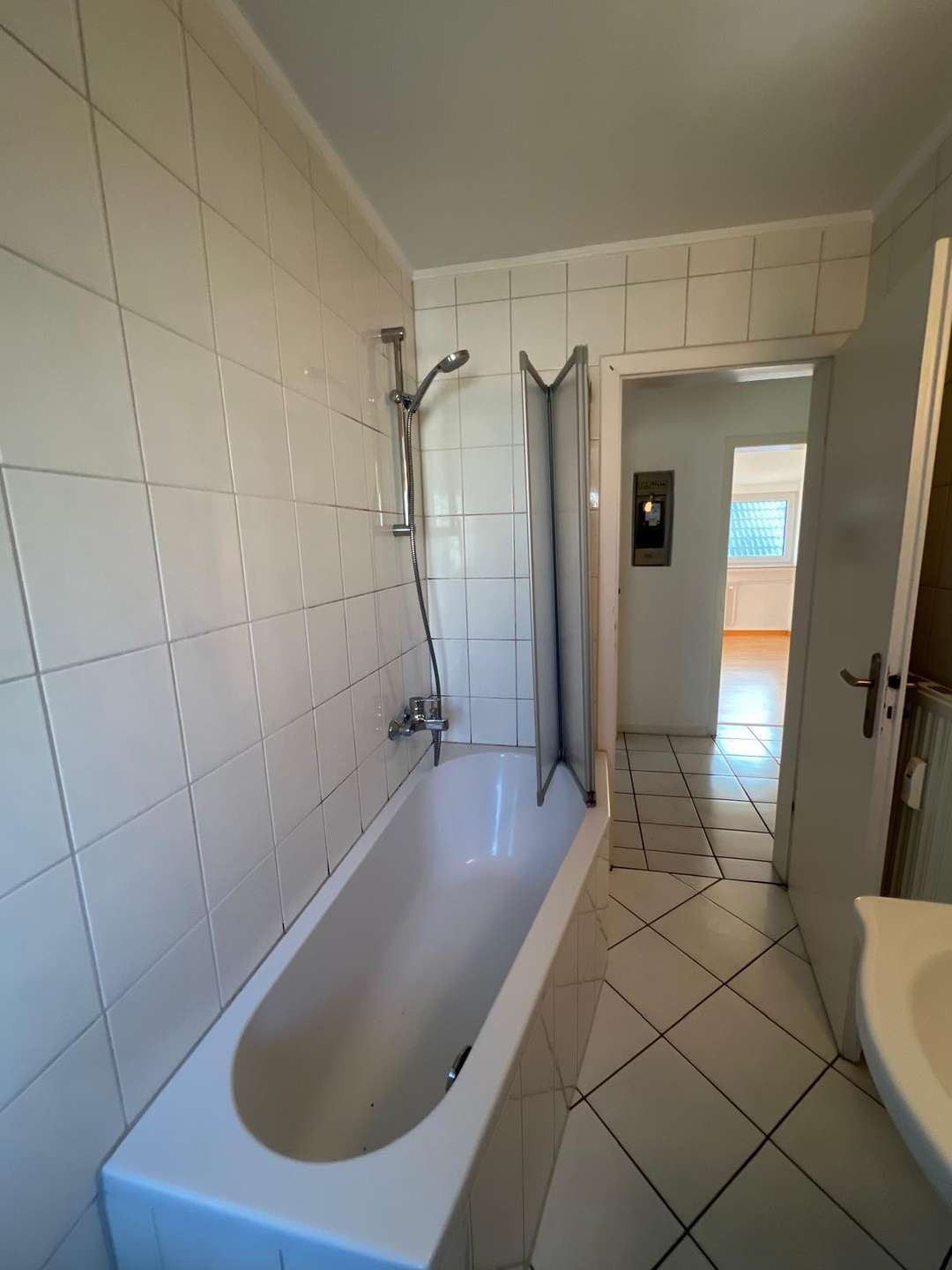 Neben dem Wohnzimmer verfügt die Wohnung über einen weiteren Schlafraum, eine Diele, eine Küche, ein Badezimmer mit Wanne und Tageslicht und einen Abstellraum auf gleicher Etage.