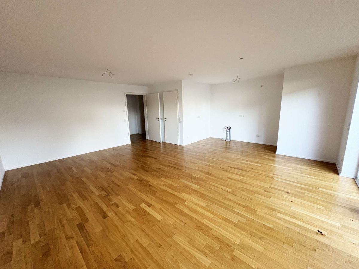 Der großzügige Wohn- und Essbereich überzeugt durch seine klare Raumaufteilung sowie den hochwertigen Parkettboden, der ein warmes und harmonisches Wohngefühl vermittelt. Bodentiefe Fenster sorgen für viel Tageslicht und ermöglichen den direkten Zugang zur Terrasse.