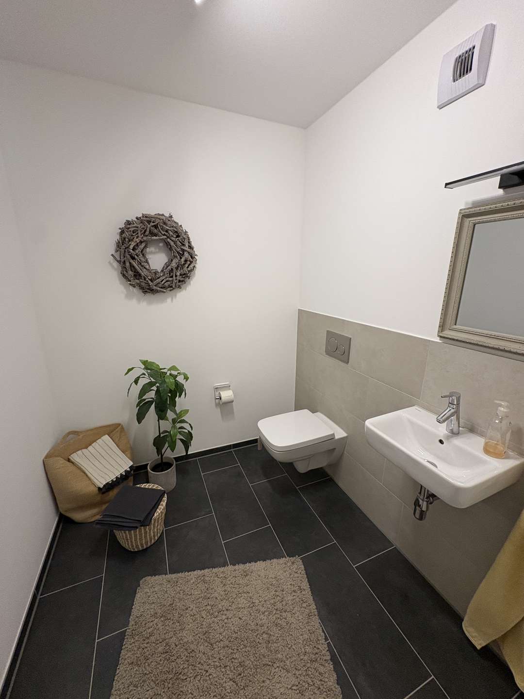Die Beheizung des Neubaus erfolgt über eine energieeffiziente Luft-/Wasser-Wärmepumpe. In der Wohnung befindet sich eine Fußbodenheizung.