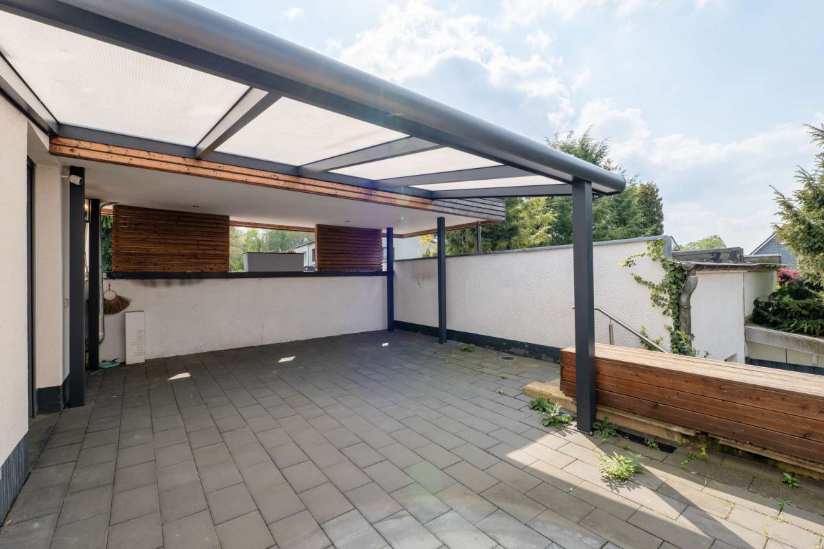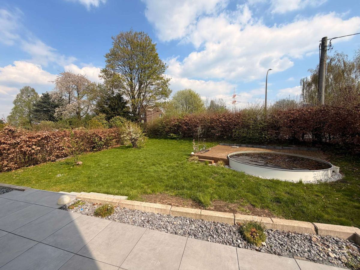 Im Außenbereich erwartet Sie ein gepflegter Garten, der mit zwei Terrassen, eine davon überdacht, zum Entspannen und Verweilen einlädt. Der eigene Pool verwandelt das Grundstück in eine private Wohlfühloase, während die hauseigene Sauna für pure Erholung und Wellness direkt im eigenen Zuhause sorgt. Eine blickdichte Hecke sorgt für zusätzliche Privatsphäre.