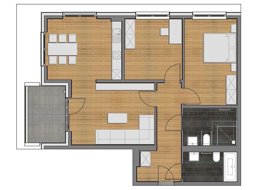 Jede Wohnung überzeugt durch eine durchdachte Architektur, helle Räume und großzügige Balkone, Terrassen oder Dachterrassen, die den Wohnraum ins Freie erweitern. Die Ausstattung lässt keine Wünsche offen: Eichenholzparkett, Fußbodenheizung und moderne Bäder sorgen für eine behagliche Atmosphäre. Die energieeffiziente Luft-Wasser-Wärmepumpe garantiert niedrige Nebenkosten – das Quartier erreicht die Energieklasse A+.