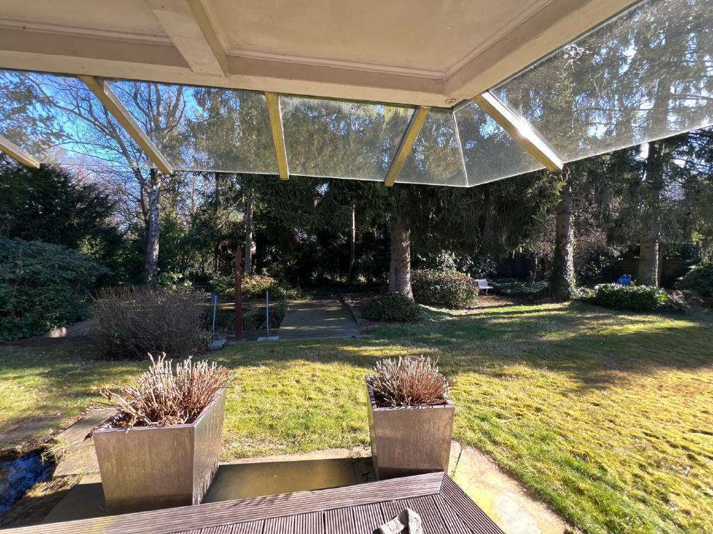 Das großzügige Grundstück mit mehreren Terrassen und Ausrichtungen nach Süden und Westen hat einen sehr schönen eingewachsenen Garten mit einem Teich und diversen sonnigen und schattigen Ruheplätzen.