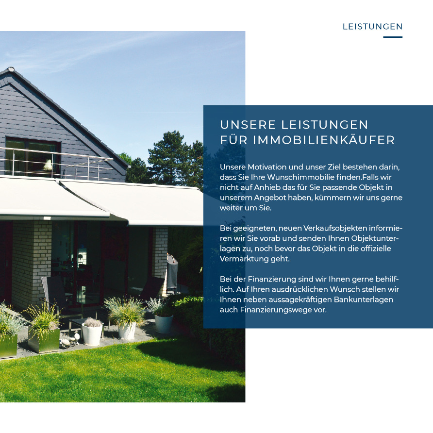 Für Sie als Käufer ist es unsere Motivation und unser Ziel, Ihre Wunsch-Immobilie zu finden. Auch Sonderwünsche sind kein Problem.